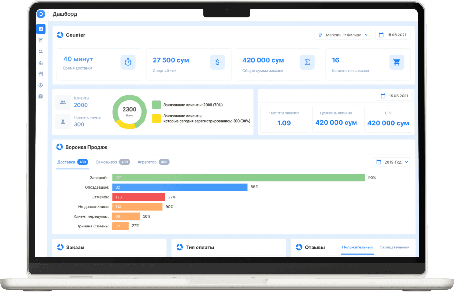 Delever предоставляет полный обзор ключевых бизнес-показателей, таких как количество заказов, выручка и анализ проданных товаров.